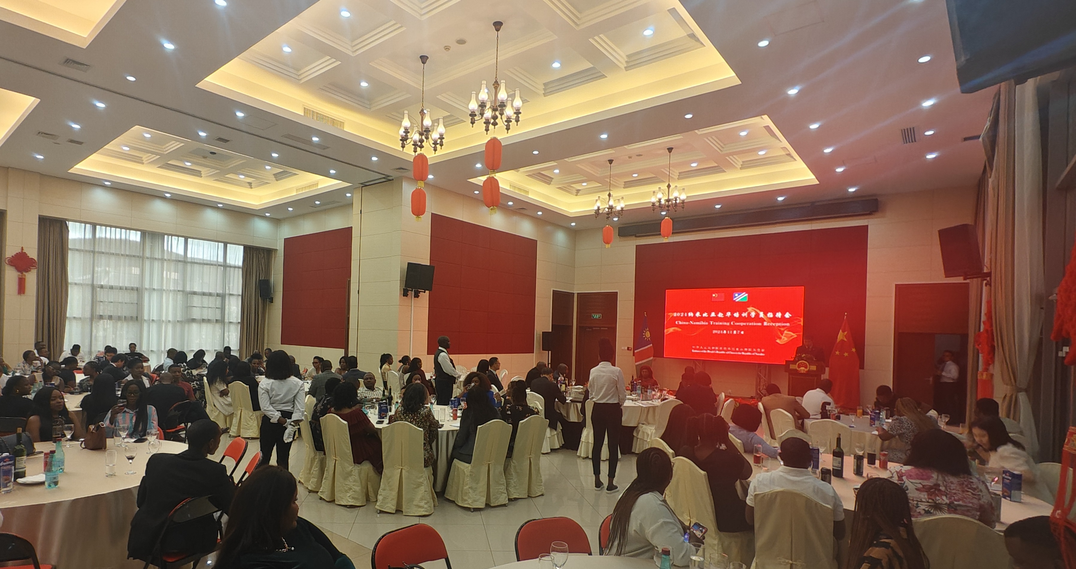 11月7日,驻纳米比亚使馆举办2024年度纳赴华培训人员招待会,纳国家计划委员会、卫生与公共服务部、高等教育、技术与创新部等有关政府部门官员、学员代表、媒体共约200人出席。